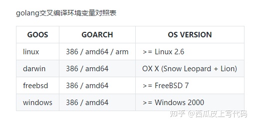 golang交叉编译环境变量对照表