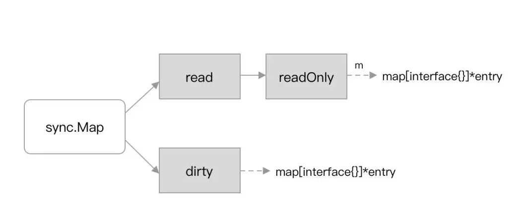 划重点,Map 类型本质上是有两个 “map”。一个叫 read、一个叫 dirty,长的也差不多:
