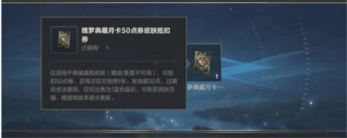 魄罗典藏月卡,购买了之后可以获得二百五十的点券,魄罗点藏月卡五十皮肤点券抵扣�唬�同时并且把峡谷宝典升级到二级,在月卡时间内,每天可以领取十点峡谷宝典经验值,188蓝色晶石,一个亲密度道具,同时还能享受购买英雄九折优惠