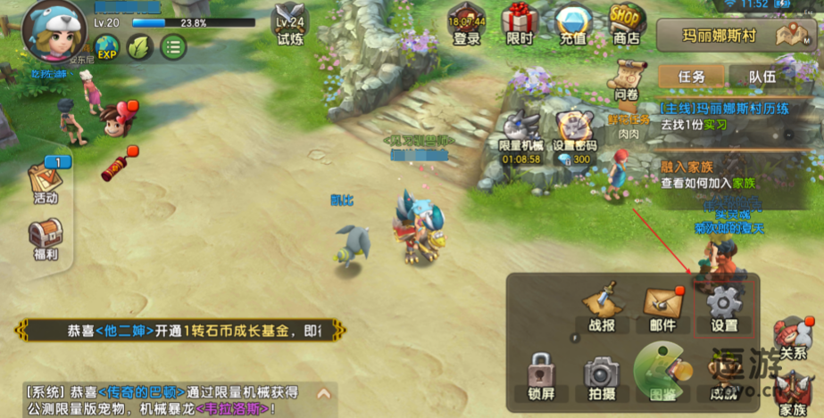 4、回到游戏主界面,再次点击右下角的“三条杠”,在弹出的菜单中,点击“邮件”,进入“邮件”列表领取就可以了。